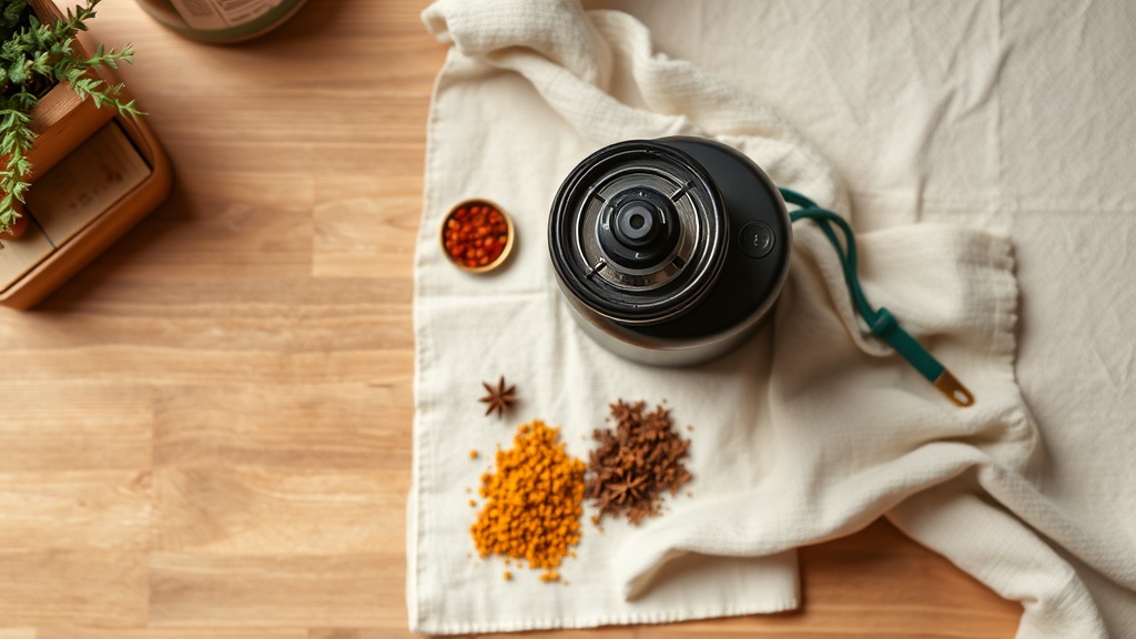Use a stainless steel or ceramic spice grinder, or a mortar and pestle for small amounts. For larger volumes, a burr coffee grinder dedicated to spices works well.